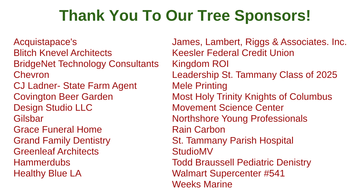We are grateful to Kingdom ROI for returning as our Presenting Sponsor. We also extend our thanks to Keesler Federal Credit Union, our Light Up the Night Sponsor, whose support keeps the Trailhead shining bright throughout the season. And a special thank you to CJ Ladner State Farm Insurance Agent, our Cookies, Cocoa, and Santa Sponsor, for helping us kick off December with a joyful holiday celebration.