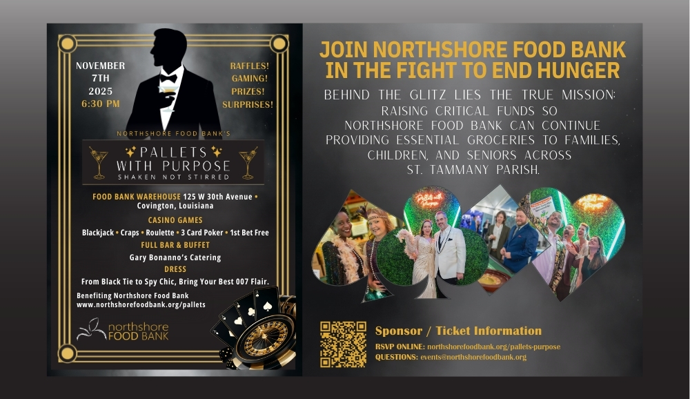 Northshore food bank's signature gala is a fun and lively night filled with casino games, raffles, cocktails, and a gourmet buffet, all to support families in need in st. tammany parish. Pallets With Purpose 2024 Photos" Event and Sponsorship Information